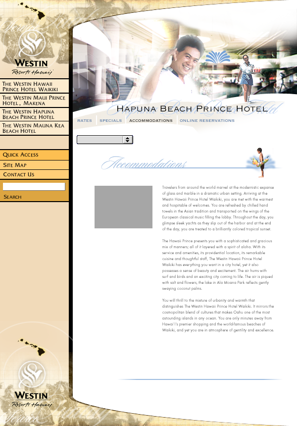 Westin Hotels wanted a unique web site for each of its four high-end, boutique resorts in Hawaii. Point b successfully represented the personality of each hotel on their individual sites, while maintaining a cohesive design that connected all four with one another.