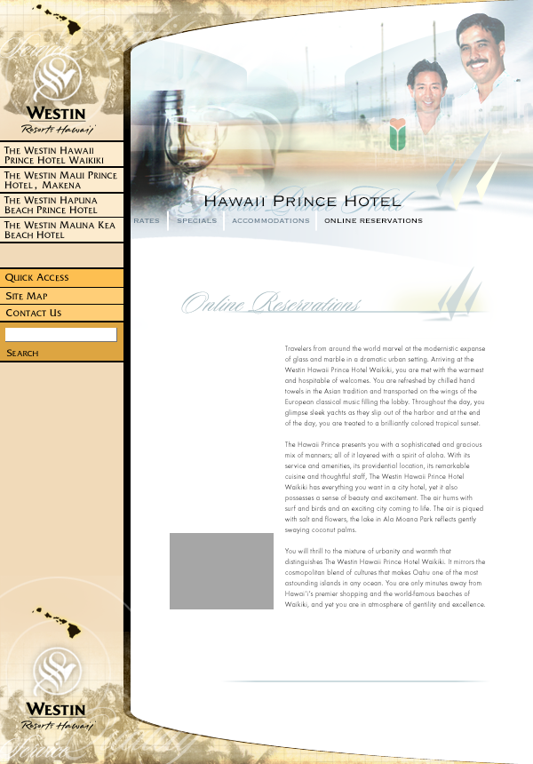 Westin Hotels wanted a unique web site for each of its four high-end, boutique resorts in Hawaii. Point b successfully represented the personality of each hotel on their individual sites, while maintaining a cohesive design that connected all four with one another.